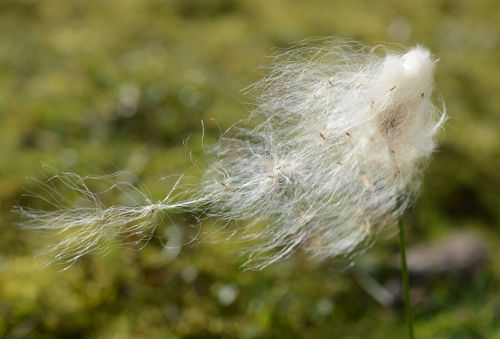 Andre typiske vindspredere er myrull, hvorav vi i fjellet finner snøull (Eriophorum scheuchzeri), som fortsatt hadde «ull» med frø hengende på i toppen av planten. Den ligner på torvull (E. vaginatum), men frøduskene er mye fyldigere, og plantene vokser enkeltvis, ikke i tuer slik som torvull. Habitatet til snøull er snøleier som smelter seint fram, slik at vekstsesongen blir kort. Frømodningen skjer dermed seint på høsten, og vi kunne samle den i slutten av september.